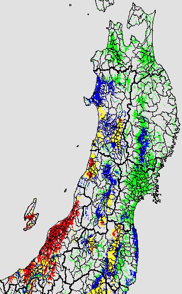平成6,11,12年の3年間における監視経験から気温区分を設定する。平均気温27℃以上は危険度が高い、26〜27℃は警戒が必要である。この気温指標は前7日間の移動平均値で図示する。