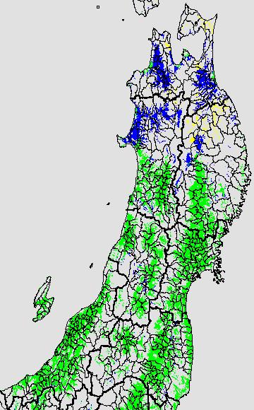 登熟停止が懸念される最低気温として、八柳 (1960)は10℃を設定している。それを基に、極端な低温が来た地域の移り変わりを、最低気温の前3日の移動平均値で図示する。