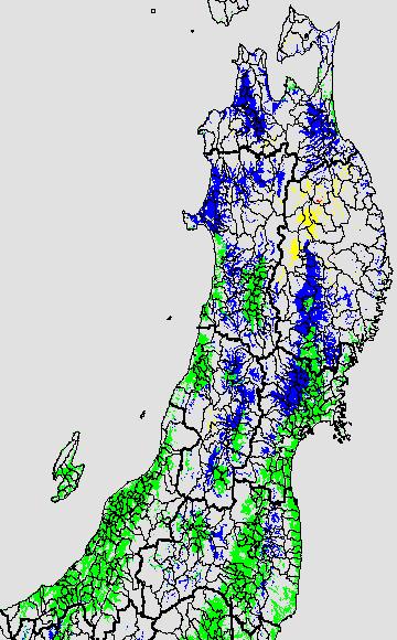 登熟停止が懸念される最低気温として、八柳 (1960)は10℃を設定している。それを基に、極端な低温が来た地域の移り変わりを、最低気温の前3日の移動平均値で図示する。