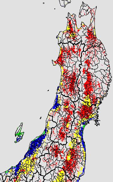 登熟停止が懸念される最低気温として、八柳 (1960)は10℃を設定している。それを基に、極端な低温が来た地域の移り変わりを、最低気温の前3日の移動平均値で図示する。