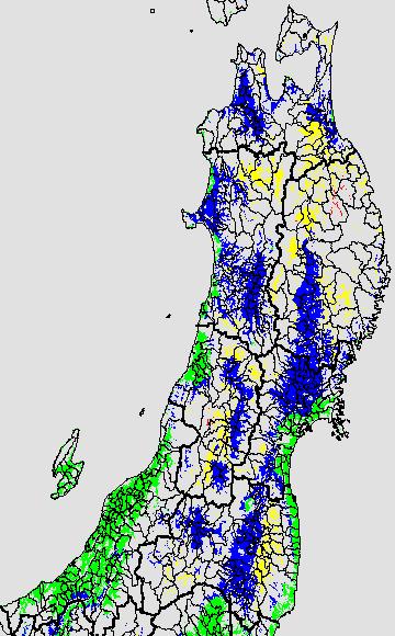 登熟停止が懸念される最低気温として、八柳 (1960)は10℃を設定している。それを基に、極端な低温が来た地域の移り変わりを、最低気温の前3日の移動平均値で図示する。