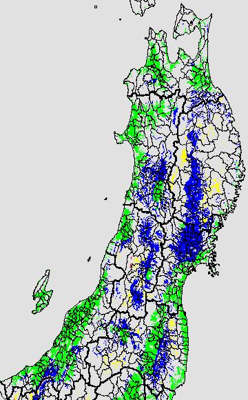 登熟停止が懸念される最低気温として、八柳 (1960)は10℃を設定している。それを基に、極端な低温が来た地域の移り変わりを、最低気温の前3日の移動平均値で図示する。