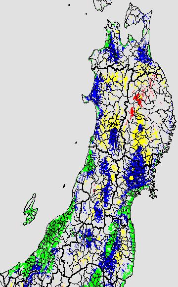 登熟停止が懸念される最低気温として、八柳 (1960)は10℃を設定している。それを基に、極端な低温が来た地域の移り変わりを、最低気温の前3日の移動平均値で図示する。