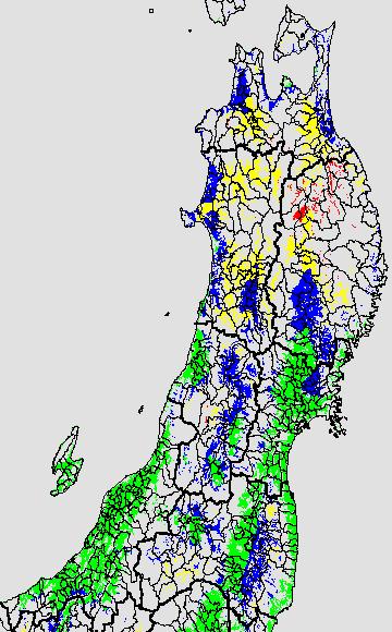 登熟停止が懸念される最低気温として、八柳 (1960)は10℃を設定している。それを基に、極端な低温が来た地域の移り変わりを、最低気温の前3日の移動平均値で図示する。