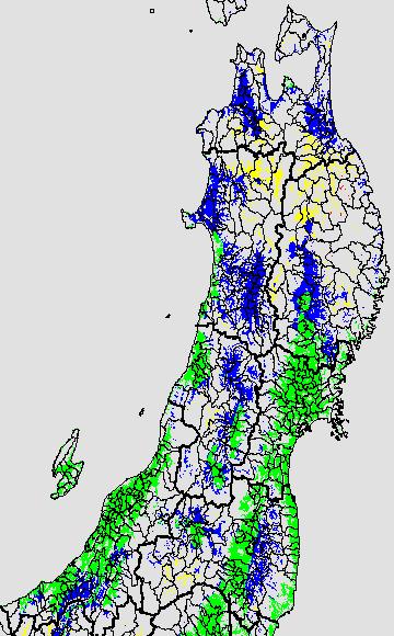 登熟停止が懸念される最低気温として、八柳 (1960)は10℃を設定している。それを基に、極端な低温が来た地域の移り変わりを、最低気温の前3日の移動平均値で図示する。