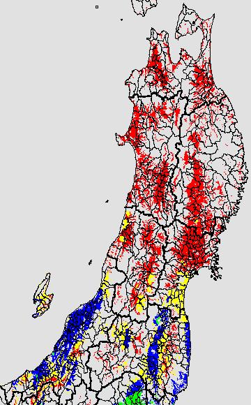 安全作期の策定にある気温指標のうち、稚苗移植の安全早限日の気温指標12.0℃を用いて表示しています。12.0℃以下については1℃刻みで表示し、可能域がどのように推移するかをみるものです。