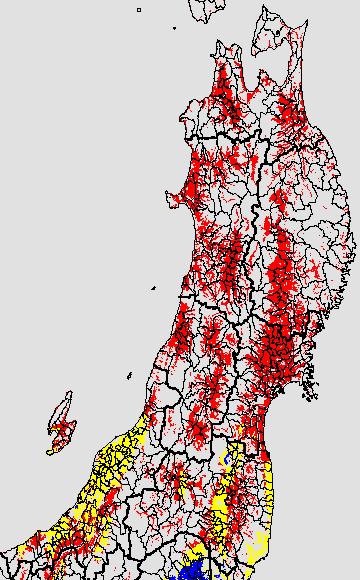 安全作期の策定にある気温指標のうち、中苗・成苗移植の安全早限日の気温指標13.0℃を用いて表示しています。13.0℃以下については1℃刻みで表示し、可能域がどのように推移するかをみるものです。