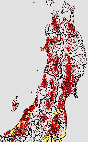 安全作期の策定にある気温指標のうち、中苗・成苗移植の安全早限日の気温指標13.5℃を用いて表示しています。13.5℃以下については1℃刻みで表示し、可能域がどのように推移するかをみるものです。