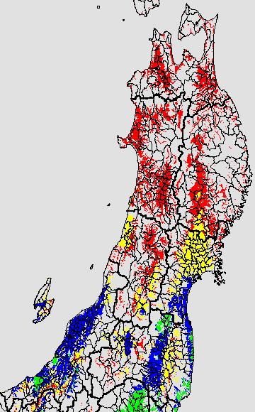 安全作期の策定にある気温指標のうち、稚苗移植の安全早限日の気温指標12.0℃を用いて表示しています。12.0℃以下については1℃刻みで表示し、可能域がどのように推移するかをみるものです。
