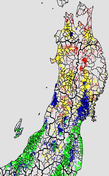 安全作期の策定にある気温指標のうち、中苗・成苗移植の安全早限日の気温指標13.0℃を用いて表示しています。13.0℃以下については1℃刻みで表示し、可能域がどのように推移するかをみるものです。