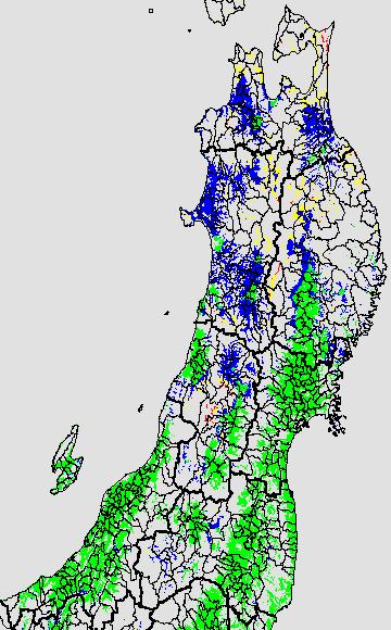 安全作期の策定にある気温指標のうち、稚苗移植の安全早限日の気温指標12.0℃を用いて表示しています。12.0℃以下については1℃刻みで表示し、可能域がどのように推移するかをみるものです。