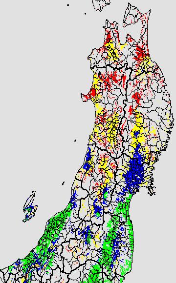 安全作期の策定にある気温指標のうち、中苗・成苗移植の安全早限日の気温指標13.5℃を用いて表示しています。13.5℃以下については1℃刻みで表示し、可能域がどのように推移するかをみるものです。