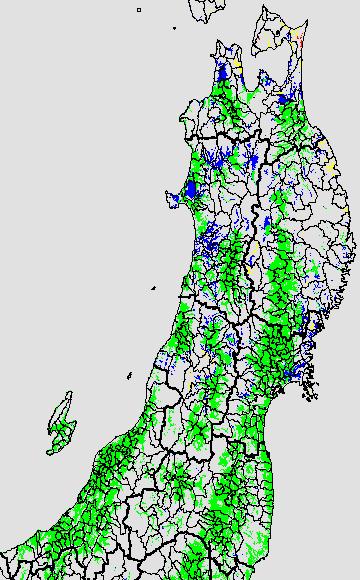 安全作期の策定にある気温指標のうち、中苗・成苗移植の安全早限日の気温指標13.5℃を用いて表示しています。13.5℃以下については1℃刻みで表示し、可能域がどのように推移するかをみるものです。