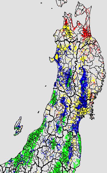 安全作期の策定にある気温指標のうち、中苗・成苗移植の安全早限日の気温指標13.5℃を用いて表示しています。13.5℃以下については1℃刻みで表示し、可能域がどのように推移するかをみるものです。