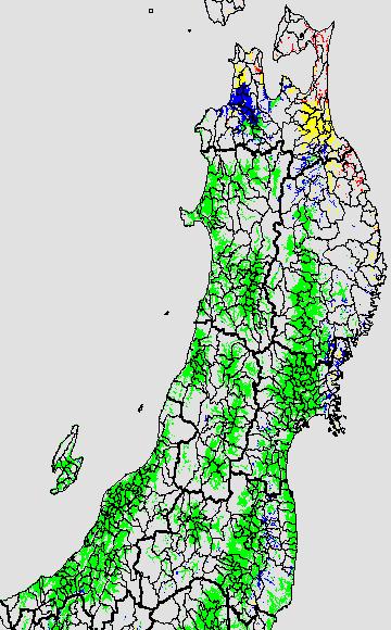 安全作期の策定にある気温指標のうち、中苗・成苗移植の安全早限日の気温指標13.5℃を用いて表示しています。13.5℃以下については1℃刻みで表示し、可能域がどのように推移するかをみるものです。