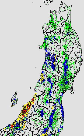 安全作期の策定にある気温指標のうち、いもち病蔓延可能日の平均気温指標20.0℃を用いて表示し、20.0℃未満については1℃刻みで表示します。過去7日の移動平均値で示す。いもち病の蔓延可能域を監視するものです。