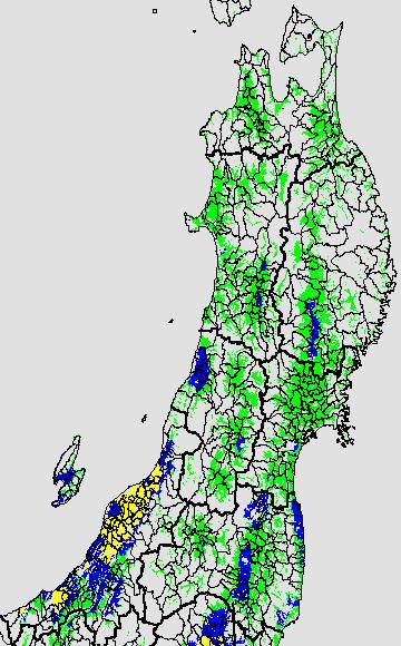安全作期の策定にある気温指標のうち、いもち病蔓延可能日の平均気温指標20.0℃を用いて表示し、20.0℃未満については1℃刻みで表示します。過去7日の移動平均値で示す。いもち病の蔓延可能域を監視するものです。