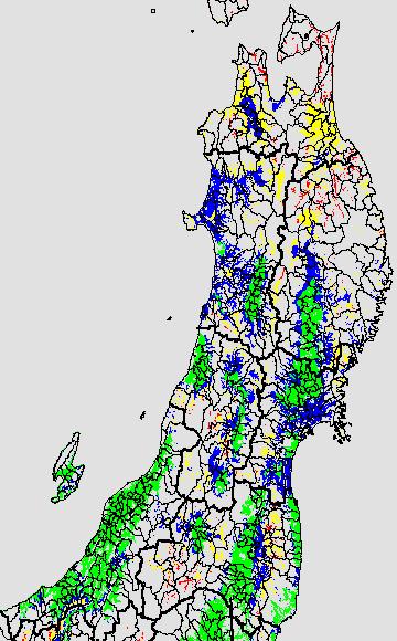 各種文献などを参考にして、分げつ形成に関する限界温度を平均気温で15℃と設定し、15℃以上については1℃刻みで表示します。過去7日の移動平均値で示す。分げつの形成が遅延すると予想される地域を監視するものです。