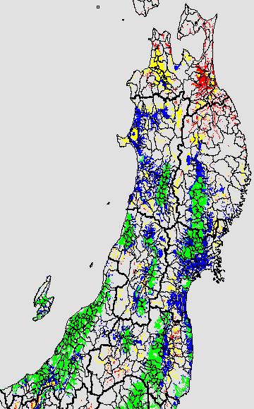 各種文献などを参考にして、分げつ形成に関する限界温度を平均気温で15℃と設定し、15℃以上については1℃刻みで表示します。過去7日の移動平均値で示す。分げつの形成が遅延すると予想される地域を監視するものです。