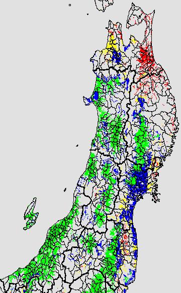 各種文献などを参考にして、分げつ形成に関する限界温度を平均気温で15℃と設定し、15℃以上については1℃刻みで表示します。過去7日の移動平均値で示す。分げつの形成が遅延すると予想される地域を監視するものです。