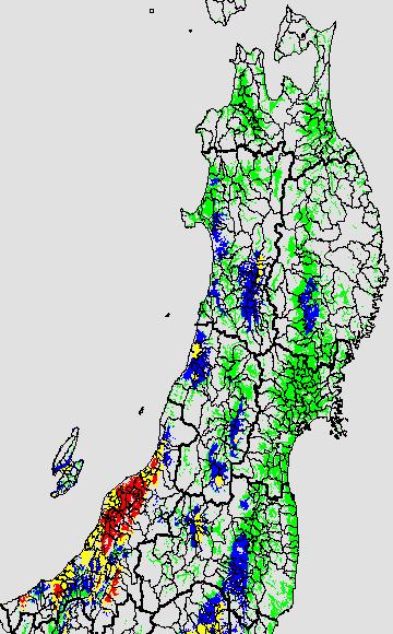 安全作期の策定にある気温指標のうち、いもち病蔓延可能日の平均気温指標20.0℃を用いて表示し、20.0℃未満については1℃刻みで表示します。過去7日の移動平均値で示す。いもち病の蔓延可能域を監視するものです。