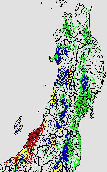 安全作期の策定にある気温指標のうち、いもち病蔓延可能日の平均気温指標20.0℃を用いて表示し、20.0℃未満については1℃刻みで表示します。過去7日の移動平均値で示す。いもち病の蔓延可能域を監視するものです。