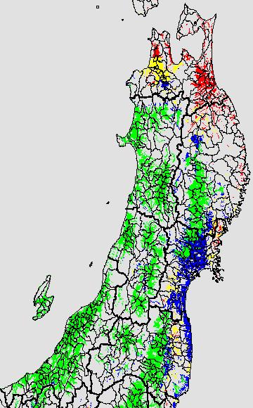 各種文献などを参考にして、分げつ形成に関する限界温度を平均気温で15℃と設定し、15℃以上については1℃刻みで表示します。過去7日の移動平均値で示す。分げつの形成が遅延すると予想される地域を監視するものです。