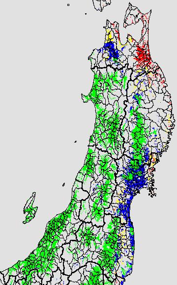 各種文献などを参考にして、分げつ形成に関する限界温度を平均気温で15℃と設定し、15℃以上については1℃刻みで表示します。過去7日の移動平均値で示す。分げつの形成が遅延すると予想される地域を監視するものです。