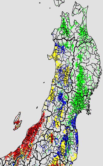 安全作期の策定にある気温指標のうち、いもち病蔓延可能日の平均気温指標20.0℃を用いて表示し、20.0℃未満については1℃刻みで表示します。過去7日の移動平均値で示す。いもち病の蔓延可能域を監視するものです。