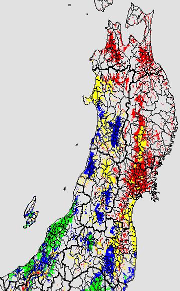 冷却量は((日平均気温−20℃)の積算値)で得られる指標である。この値が負でかつ数値が大きいほど低温の程度が大きくなり、低温被害が大きくなると推定される。この気温指標は前7日間の移動平均値を基に変換して示す。
