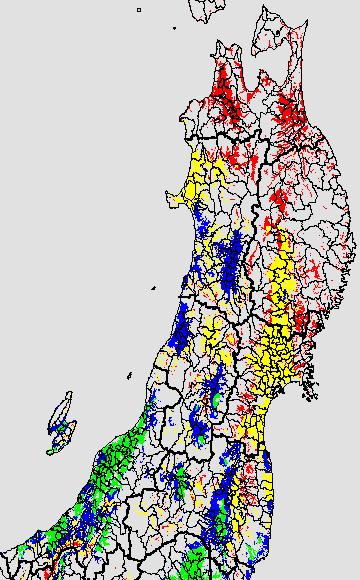 冷却量は((日平均気温−20℃)の積算値)で得られる指標である。この値が負でかつ数値が大きいほど低温の程度が大きくなり、低温被害が大きくなると推定される。この気温指標は前7日間の移動平均値を基に変換して示す。