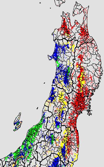 冷却量は((日平均気温−20℃)の積算値)で得られる指標である。この値が負でかつ数値が大きいほど低温の程度が大きくなり、低温被害が大きくなると推定される。この気温指標は前7日間の移動平均値を基に変換して示す。