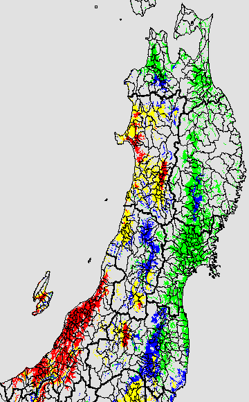 安全作期の策定にある気温指標のうち、いもち病蔓延可能日の平均気温指標20.0℃を用いて表示し、20.0℃未満については1℃刻みで表示します。過去7日の移動平均値で示す。いもち病の蔓延可能域を監視するものです。