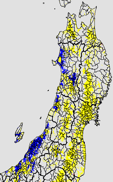 開花・受精期も低温に弱い時期です。文献等を参考に開花・受精に不適な地域の移り変わりを、最高気温を用いて前5日間の移動平均値で図示します。