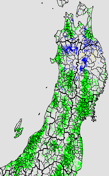 登熟停止が懸念される最低気温として、八柳(1960)は10℃を設定している。それを基に、極端な低温が来た地域の移り変わりを、最低気温の前3日の移動平均値で図示する。