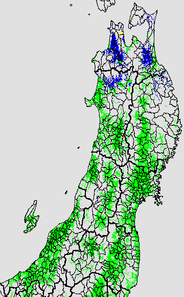 登熟停止が懸念される最低気温として、八柳(1960)は10℃を設定している。それを基に、極端な低温が来た地域の移り変わりを、最低気温の前3日の移動平均値で図示する。