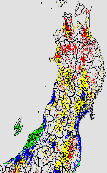 登熟停止が懸念される最低気温として、八柳(1960)は10℃を設定している。それを基に、極端な低温が来た地域の移り変わりを、最低気温の前3日の移動平均値で図示する。