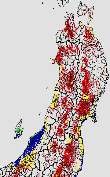 登熟停止が懸念される最低気温として、八柳(1960)は10℃を設定している。それを基に、極端な低温が来た地域の移り変わりを、最低気温の前3日の移動平均値で図示する。
