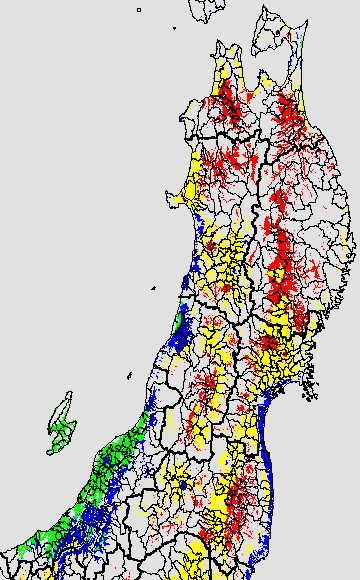 登熟停止が懸念される最低気温として、八柳(1960)は10℃を設定している。それを基に、極端な低温が来た地域の移り変わりを、最低気温の前3日の移動平均値で図示する。