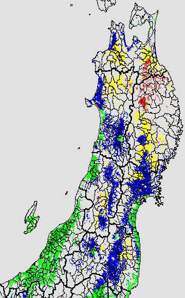 登熟停止が懸念される最低気温として、八柳(1960)は10℃を設定している。それを基に、極端な低温が来た地域の移り変わりを、最低気温の前3日の移動平均値で図示する。
