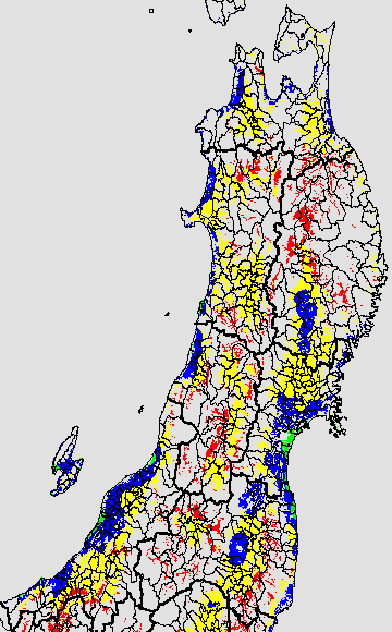 登熟停止が懸念される最低気温として、八柳(1960)は10℃を設定している。それを基に、極端な低温が来た地域の移り変わりを、最低気温の前3日の移動平均値で図示する。