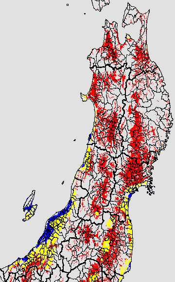 登熟停止が懸念される最低気温として、八柳(1960)は10℃を設定している。それを基に、極端な低温が来た地域の移り変わりを、最低気温の前3日の移動平均値で図示する。