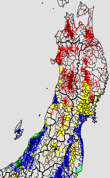 登熟停止が懸念される最低気温として、八柳(1960)は10℃を設定している。それを基に、極端な低温が来た地域の移り変わりを、最低気温の前3日の移動平均値で図示する。