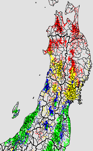 安全作期の策定にある気温指標のうち、稚苗移植の安全早限日の気温指標12.0℃を用いて表示しています。12.0℃以下については1℃刻みで表示し、可能域がどのように推移するかをみるものです。