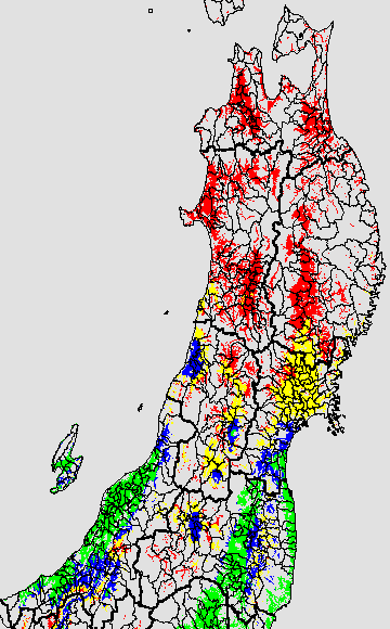 安全作期の策定にある気温指標のうち、稚苗移植の安全早限日の気温指標12.0℃を用いて表示しています。12.0℃以下については1℃刻みで表示し、可能域がどのように推移するかをみるものです。