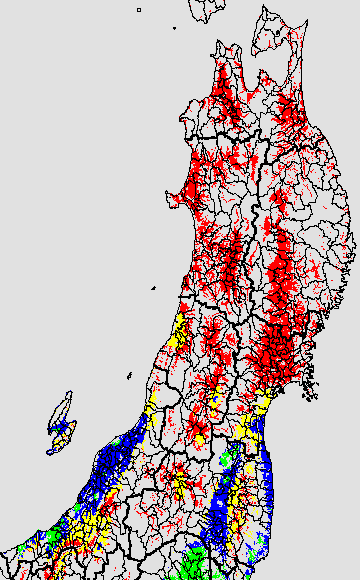 安全作期の策定にある気温指標のうち、中苗・成苗移植の安全早限日の気温指標13.0℃を用いて表示しています。13.0℃以下については1℃刻みで表示し、可能域がどのように推移するかをみるものです。