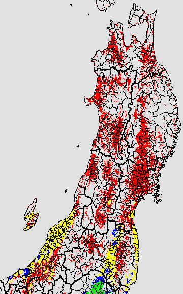 安全作期の策定にある気温指標のうち、中苗・成苗移植の安全早限日の気温指標13.5℃を用いて表示しています。13.5℃以下については1℃刻みで表示し、可能域がどのように推移するかをみるものです。
