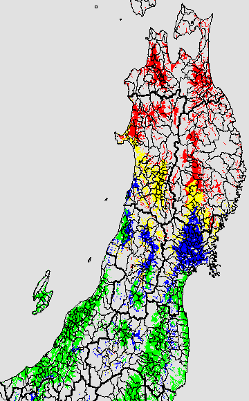 安全作期の策定にある気温指標のうち、夏作物の生育可能な気温指標10℃を用 いて表示しています。10℃以下については1℃刻みで表示し、可能域がどのように推移するかをみるものです。