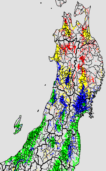 安全作期の策定にある気温指標のうち、夏作物の生育可能な気温指標10℃を用 いて表示しています。10℃以下については1℃刻みで表示し、可能域がどのように推移するかをみるものです。