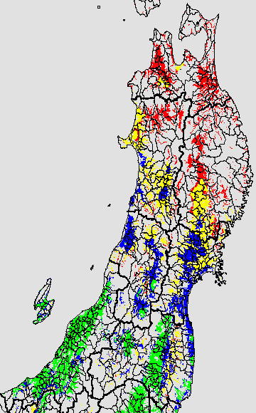 安全作期の策定にある気温指標のうち、稚苗移植の安全早限日の気温指標12.0℃を用いて表示しています。12.0℃以下については1℃刻みで表示し、可能域がどのように推移するかをみるものです。